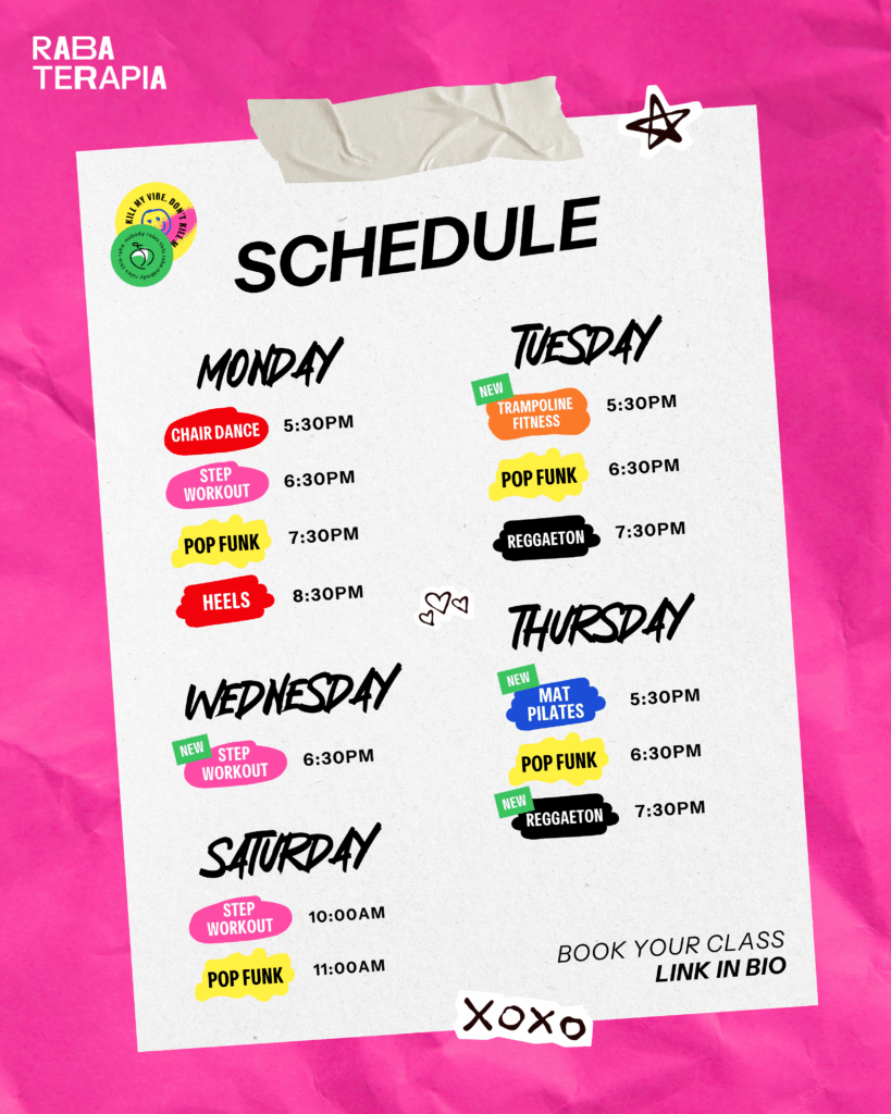 On commence avec les grandes nouvelles: on a un nouvel horaire ! Notre nouvelle prof de Pilates, Anna, vient de rejoindre l’équipe et on a aussi ajusté certains cours pour que tu puisses mieux t’organiser et ne rien manquer (oui, ça veut dire plus de classes aussi ! ✨).